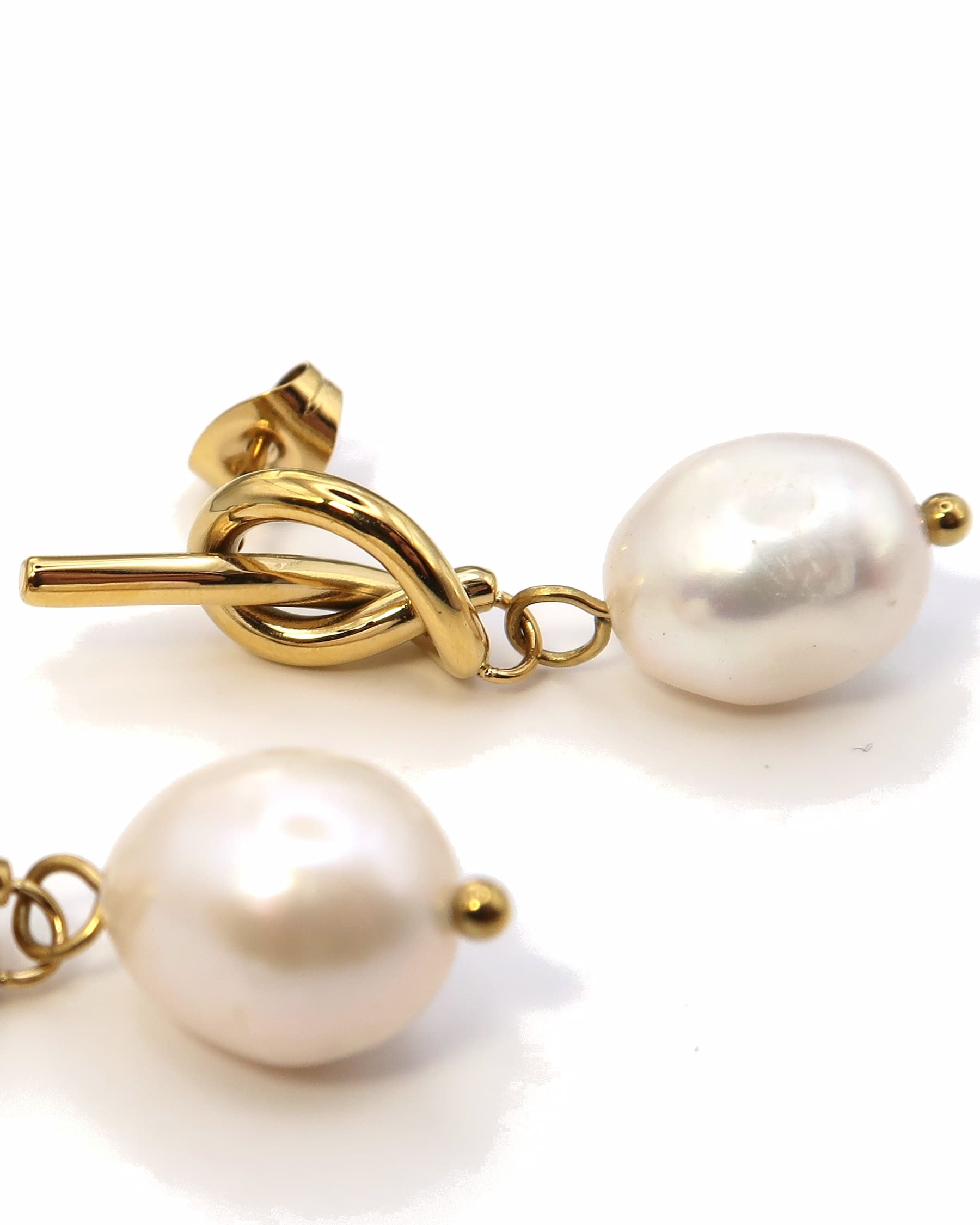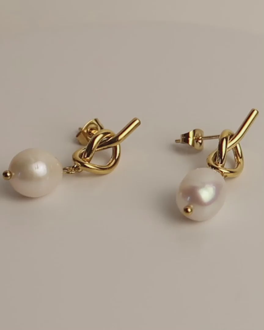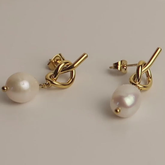 ARLET - Goldene Knoten Ohrringe mit Süßwasserperlen