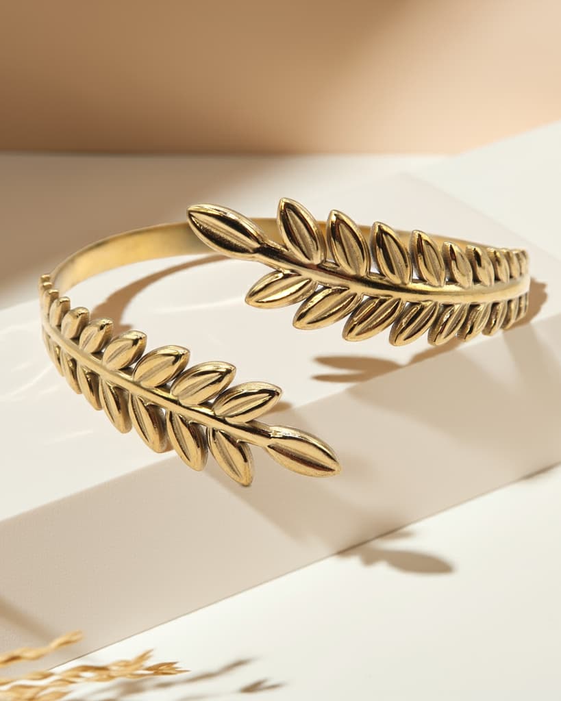 Inspiriert von antiken römischen und griechischen Lorbeerkränzen, verbindet der AURELIA Armreif klassische Eleganz mit modernem Minimalismus. Gefertigt aus gold- und silberfarbenem Edelstahl, ist er nicht nur stilvoll, sondern auch größenverstellbar und angenehm zu tragen – ein zeitloses Statement für jeden Look.