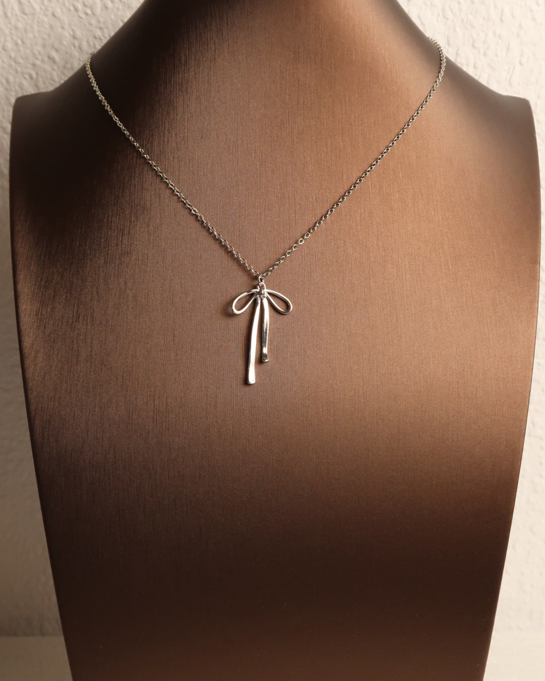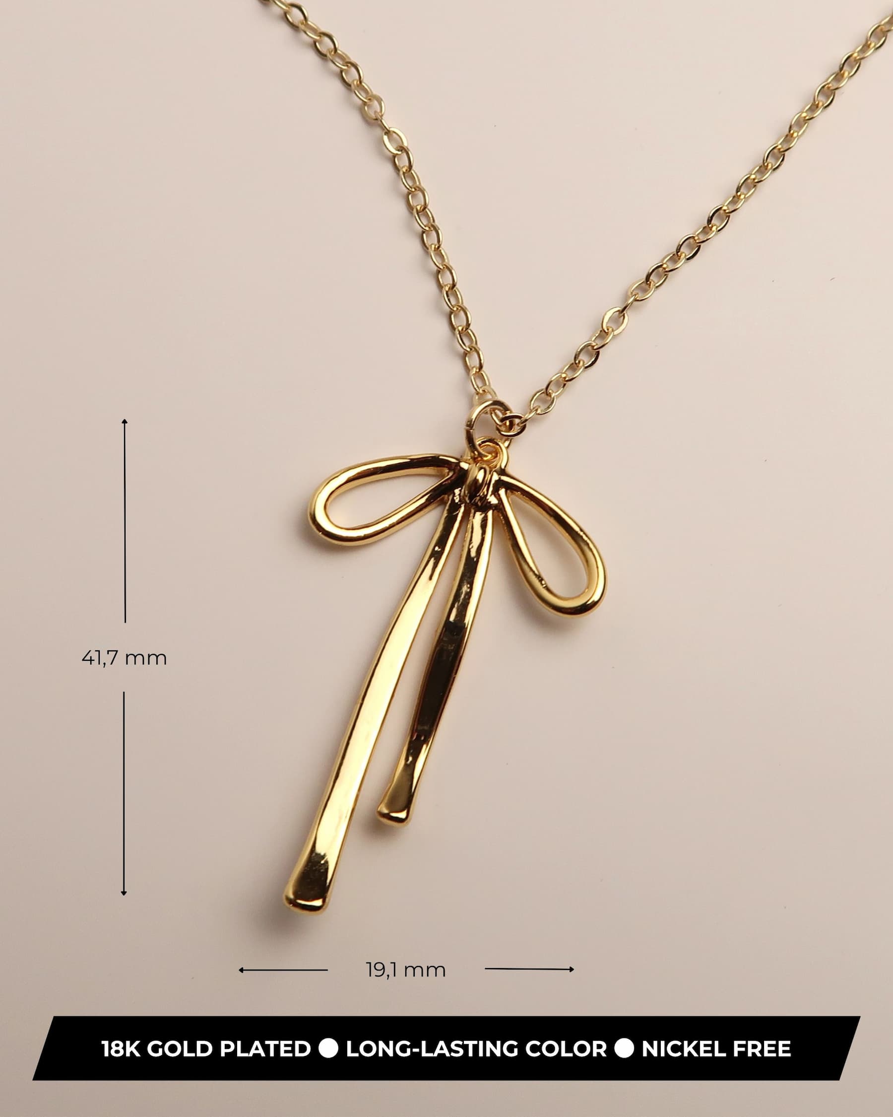 AURÉLIE ist eine zarte Halskette aus 18K vergoldetem Kupfer, die mit einem eleganten Schleifenanhänger verziert ist. Am Ende der Verlängerungskette schimmert ein feiner Zirkon, der einen subtilen Akzent setzt. Die silberne Variante ist mit Rhodium überzogen und bietet eine moderne, edle Alternative. Perfekt für feminine Looks mit einem Hauch verspielter Leichtigkeit.