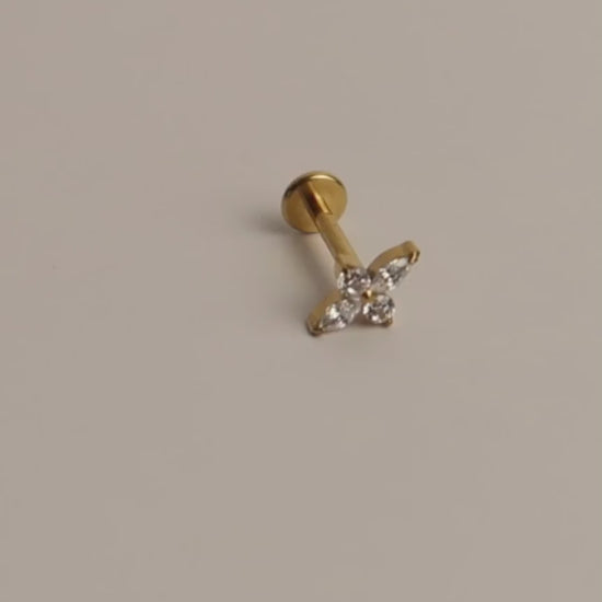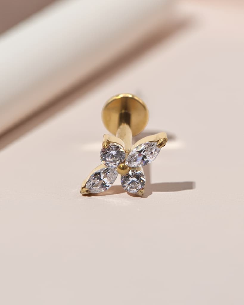 AZIA ist ein elegantes Helix Piercing aus hochwertigem Titan, das mit einem einzigartigen Vierpunkt-Stern-Design besticht. Zwei ovale und zwei runde Zirkone verleihen dem Piercing dezenten Glanz, während das Innengewinde für sicheren und komfortablen Halt sorgt. Perfekt für einen stilvollen Look im Alltag.