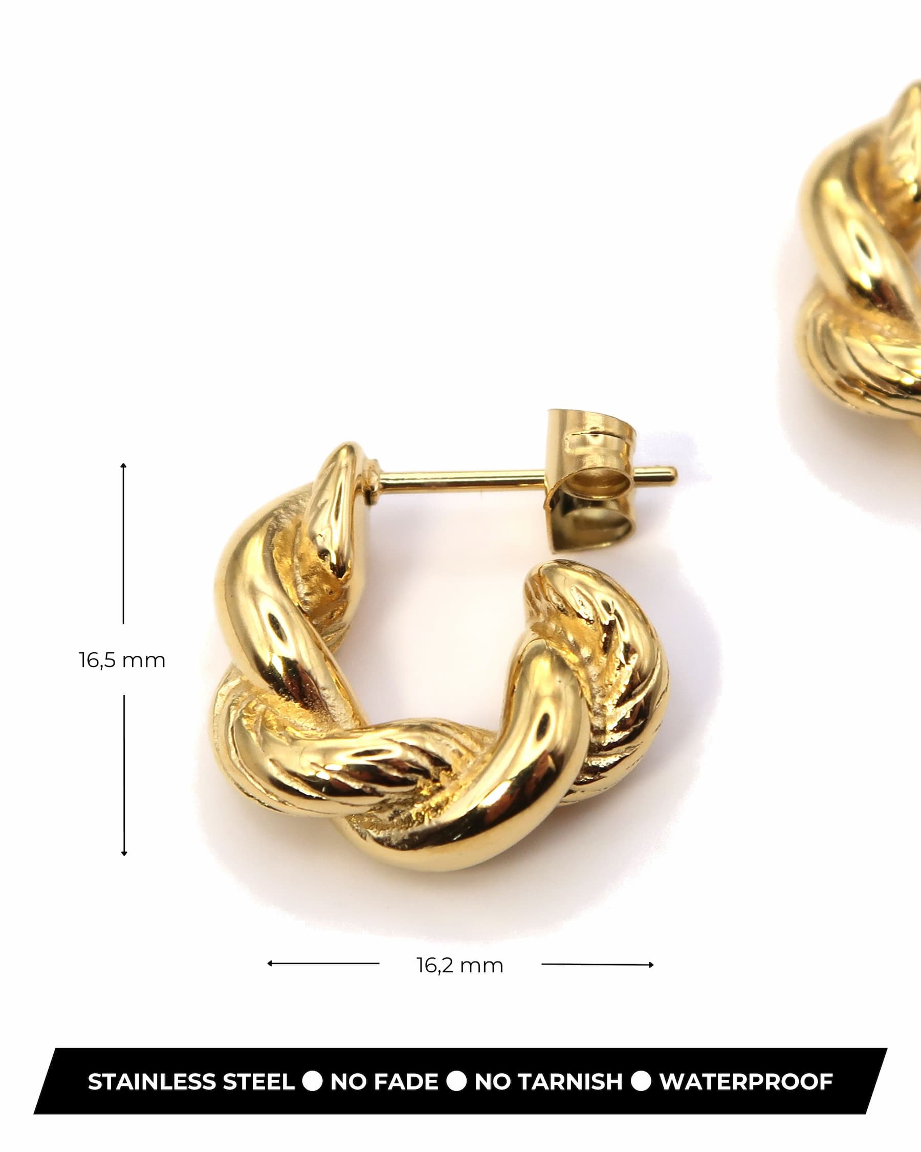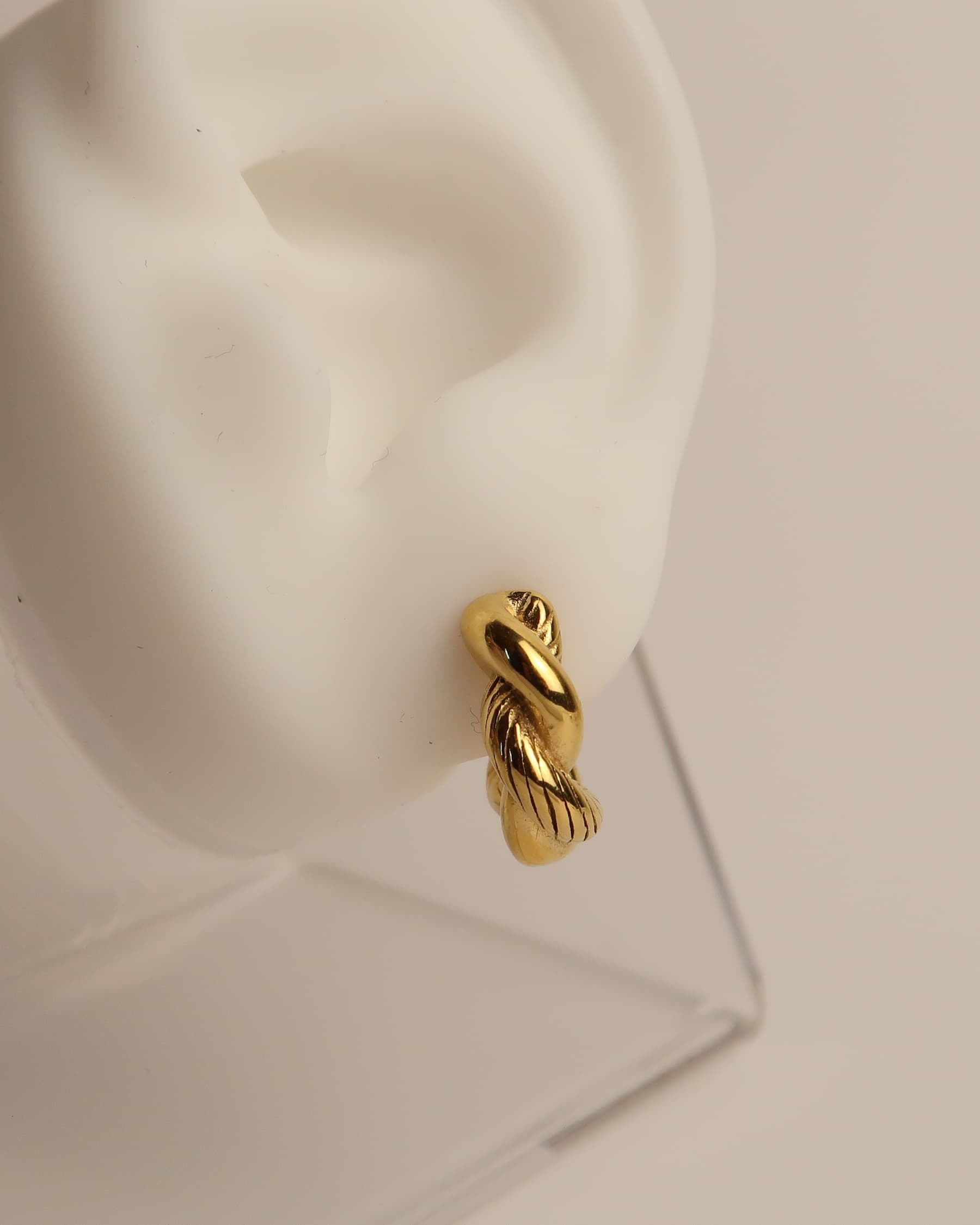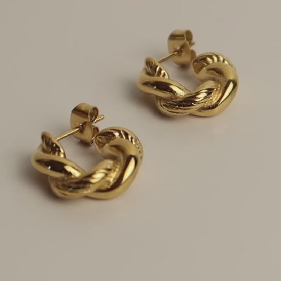 Die C-förmigen Edelstahl Kreolen KALARINA bestechen durch ihr verdrehtes Design, bei dem sich glatte und texturierte Seile elegant umeinander winden. In Gold oder Silber erhältlich, setzen sie einen modernen Akzent und sind durch das robuste Material ideal für den täglichen Gebrauch geeignet.