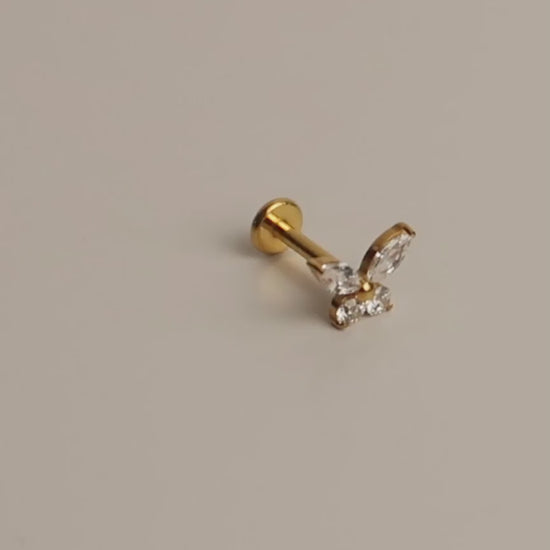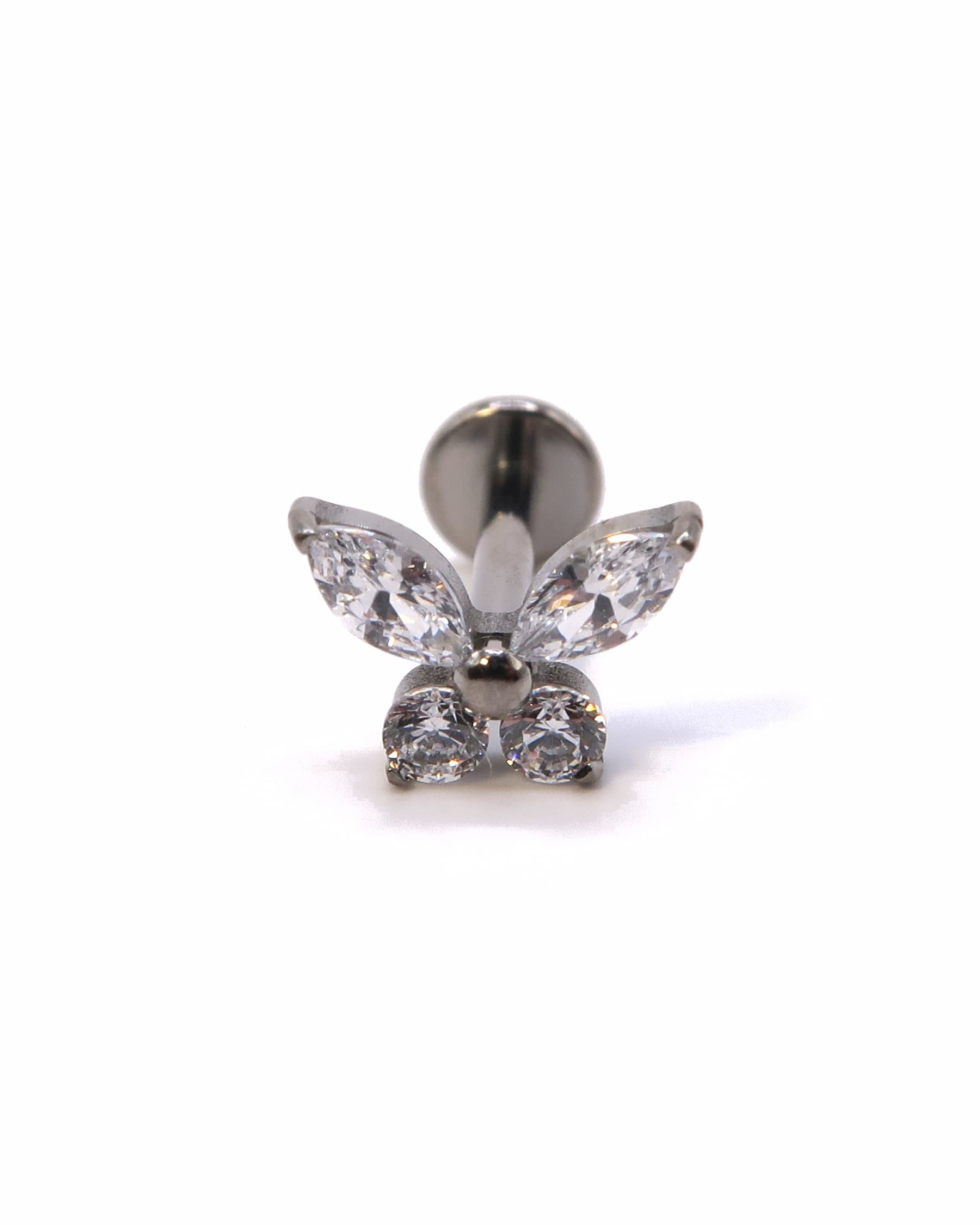 Das LOLA Helix Piercing aus Titan besticht durch sein süßes Schmetterlingsdesign, das mit funkelnden Zirkonen verziert ist. Durch das praktische Innengewinde lässt es sich leicht einsetzen und angenehm tragen. Ein glitzerndes Highlight, das sich ideal für den Alltag eignet.