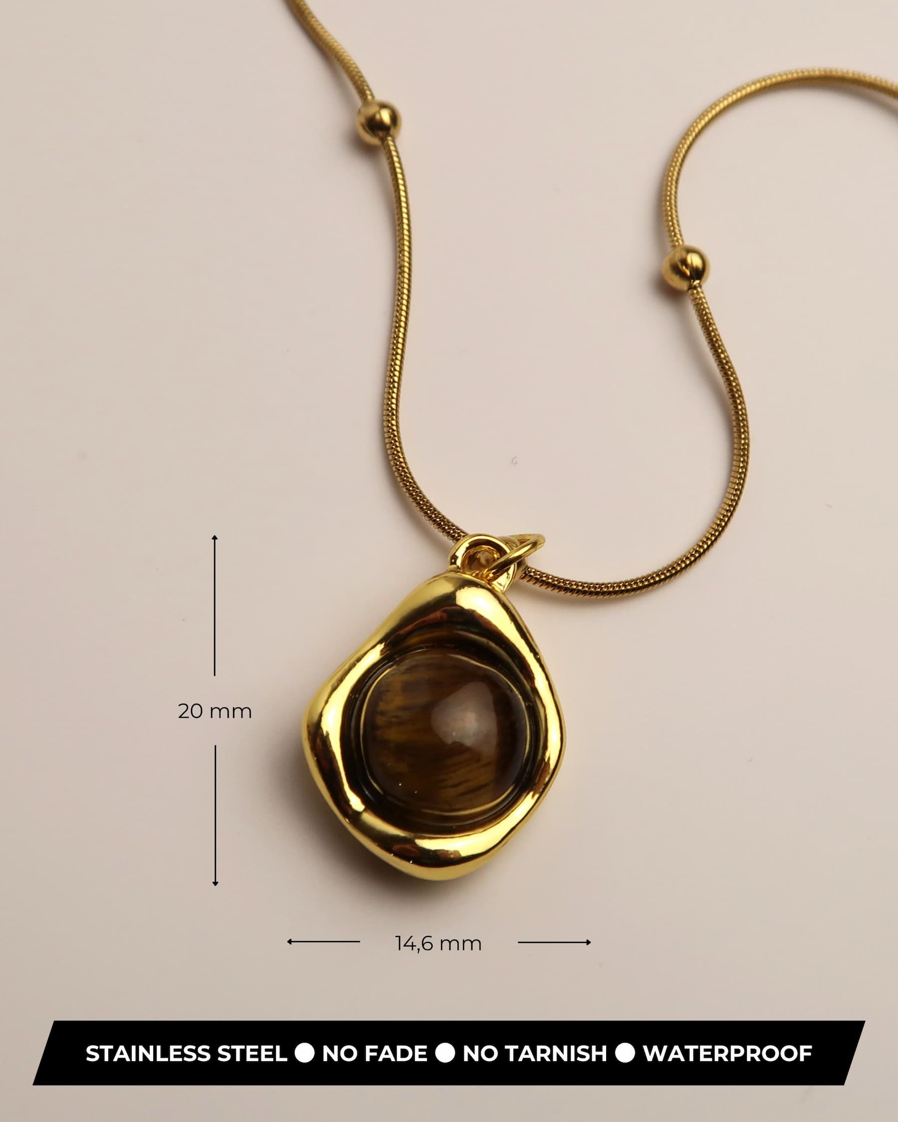 MYAH - Goldene Edelstahlkette mit Tigerauge-Anhänger