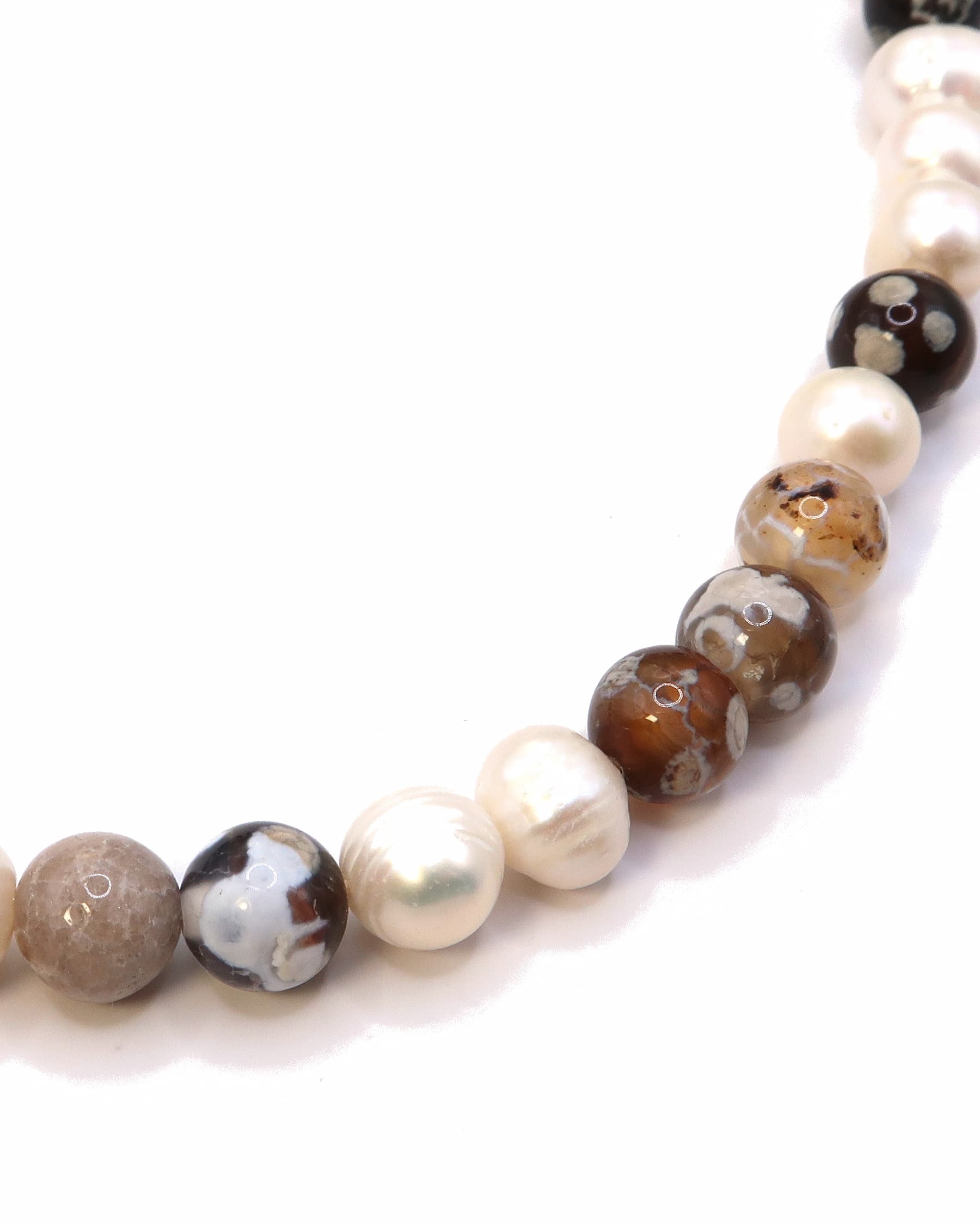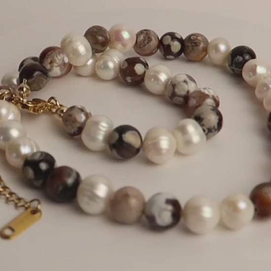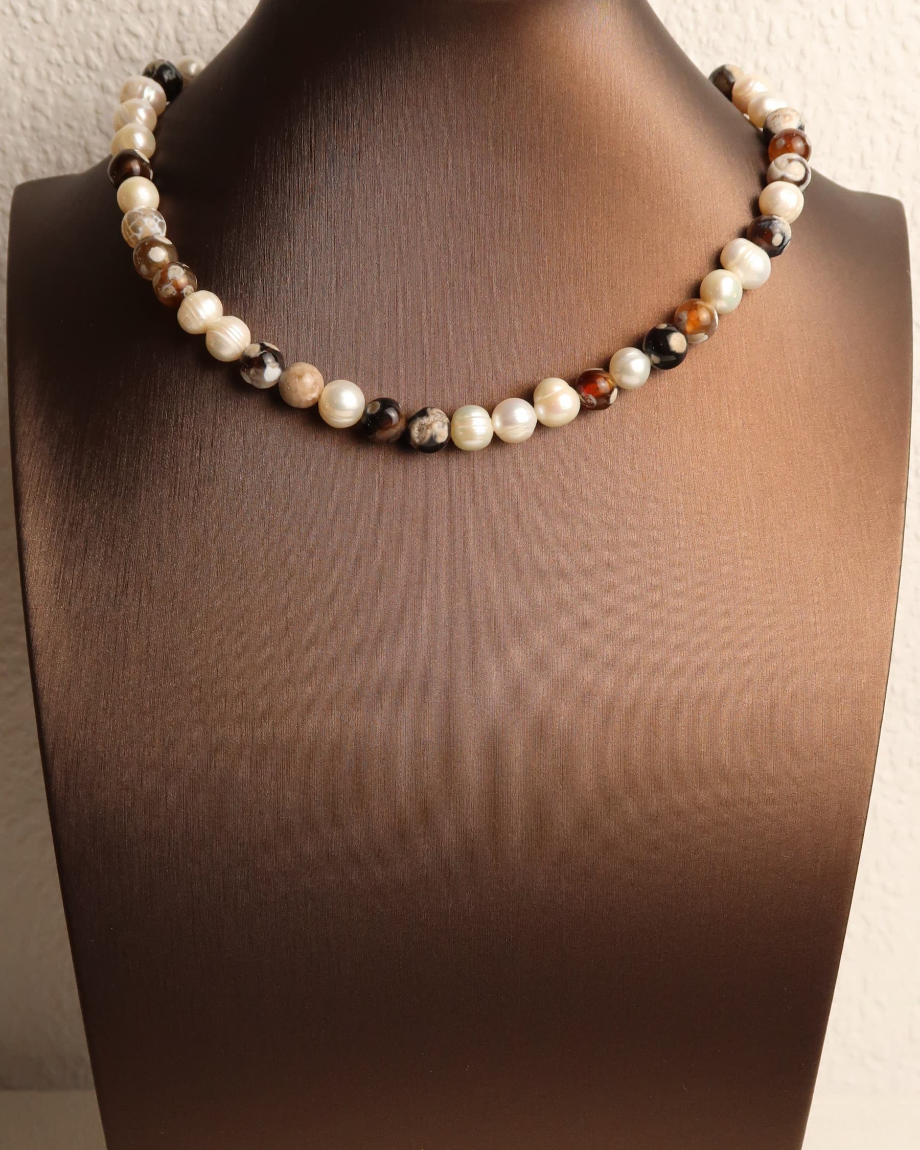 RAYA - Perlenkette mit Süßwasserperlen und Feuer Achat